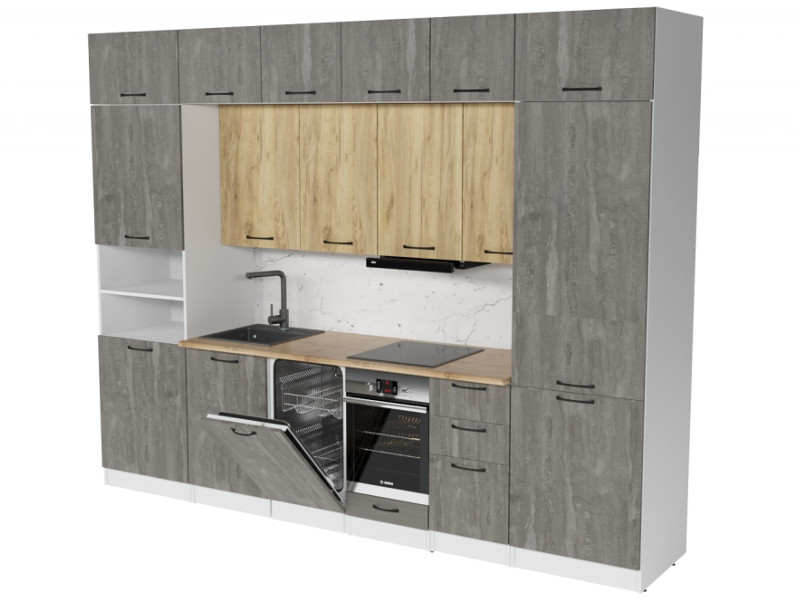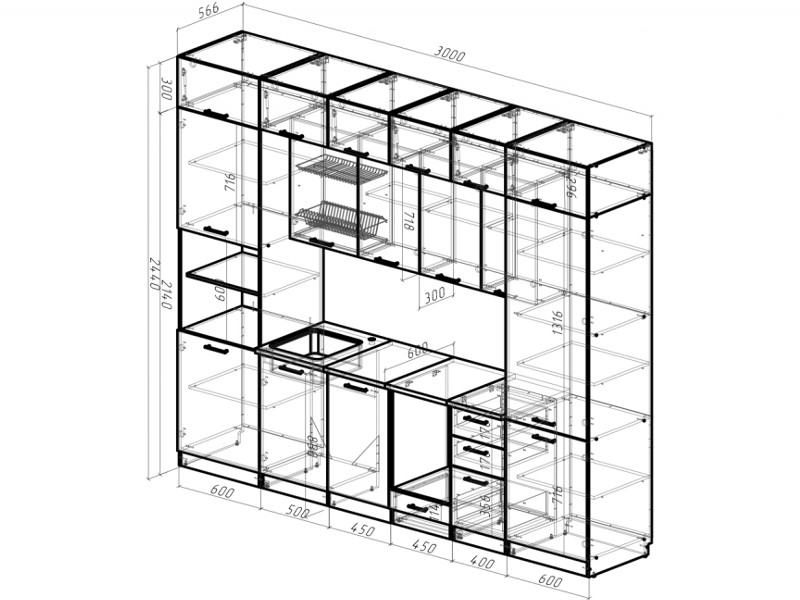 Внимание: стеновая панель, мойка, смеситель и посудосушители в комплекты гарнитура не входят.