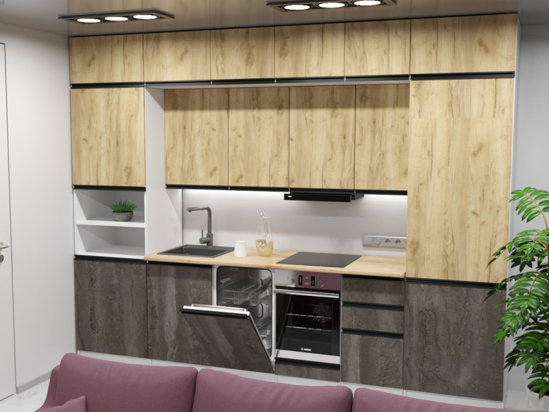 - Фасад: Дуб золотой/Бетон темный