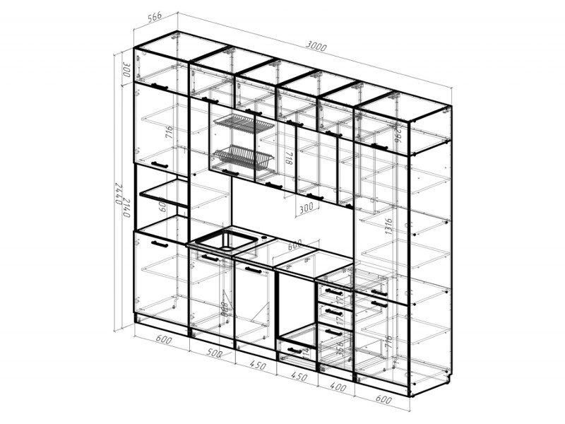 Внимание: стеновая панель, мойка, смеситель и посудосушители в комплекты гарнитура не входят.