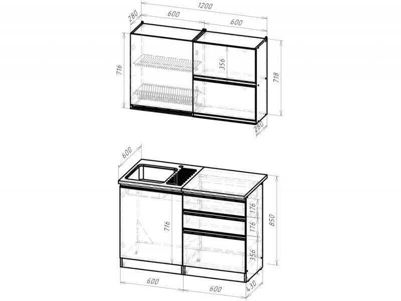Внимание: стеновая панель, мойка, смеситель и посудосушители в комплекты гарнитура не входят.