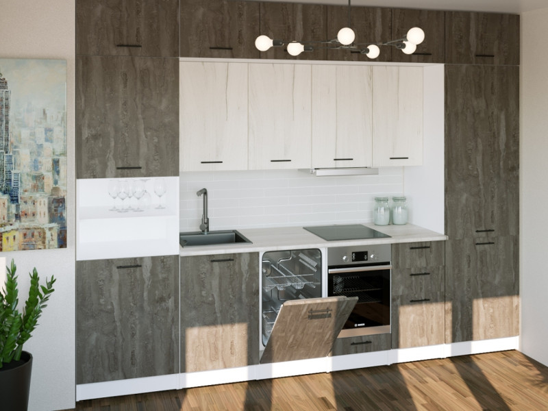 Внимание: стеновая панель, мойка, смеситель и посудосушители в комплекты гарнитура не входят.
