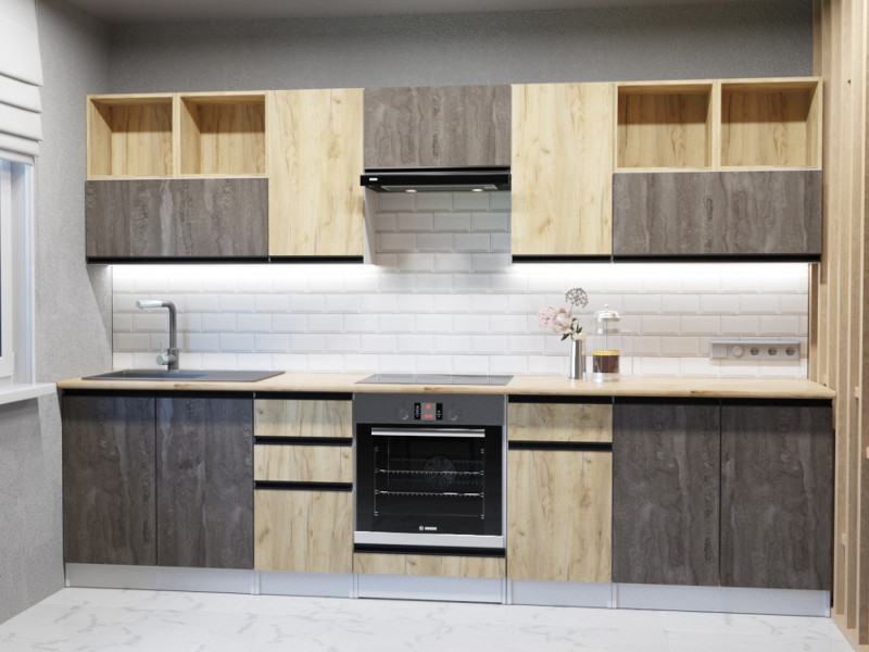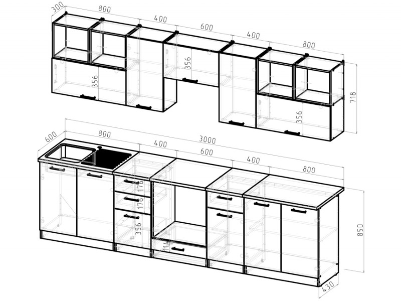 Внимание: стеновая панель, мойка, смеситель и посудосушители в комплекты гарнитура не входят.