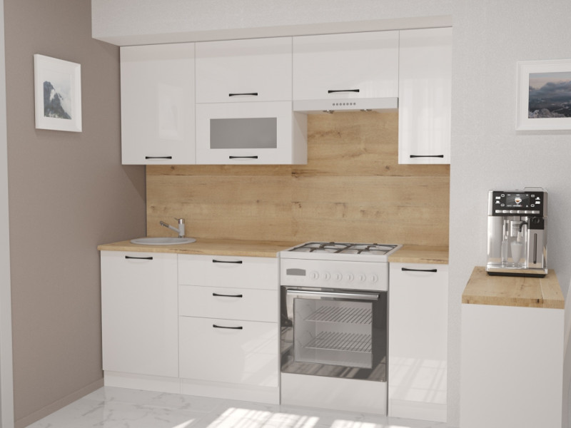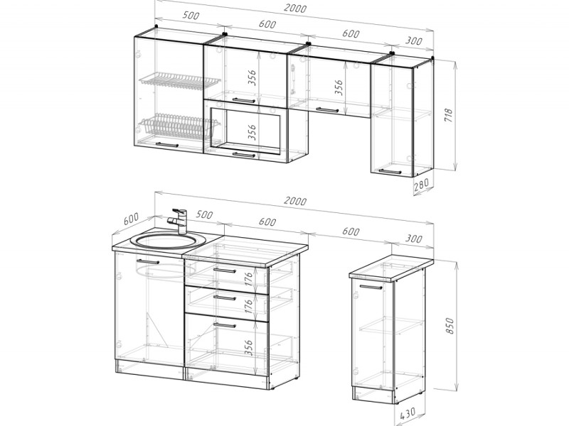 Внимание: стеновая панель, мойка, смеситель и посудосушители в комплекты гарнитура не входят.