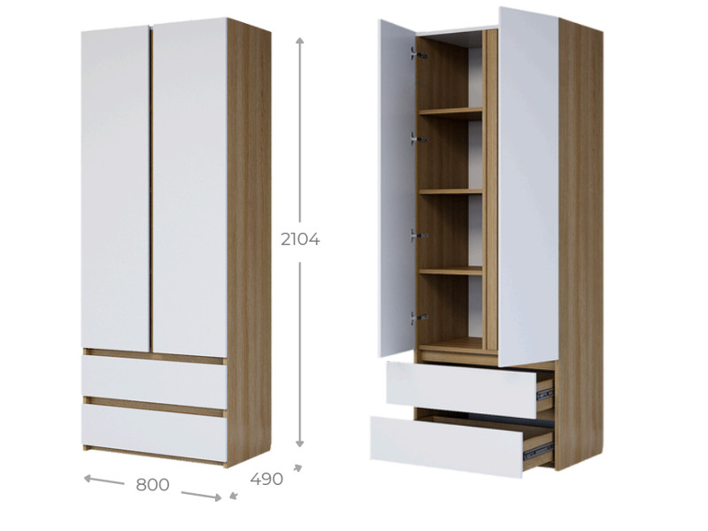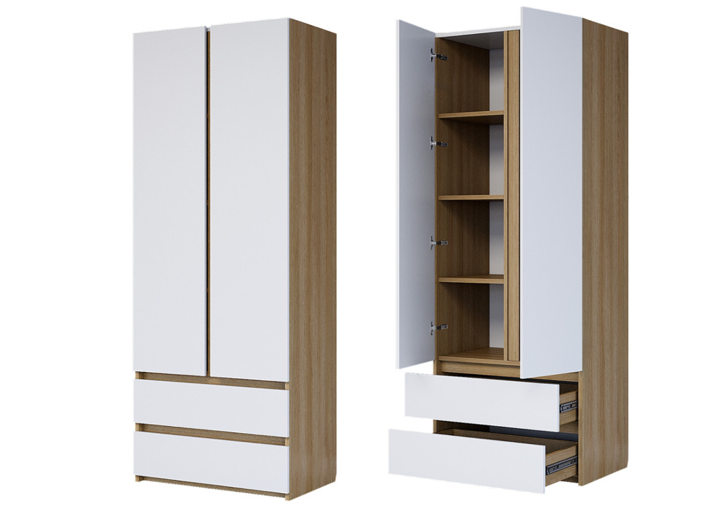 Шкаф 2-х дверный комбинированный №1 (с ящиками) Модуль 03 Альфа Дуб Сонома светлый / Белый
