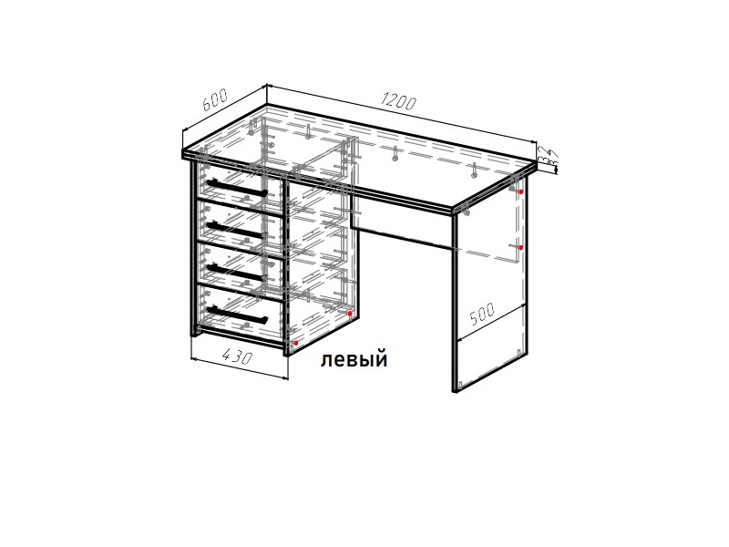 Стол однотумбовый (4 ящика) левый GM 7.2