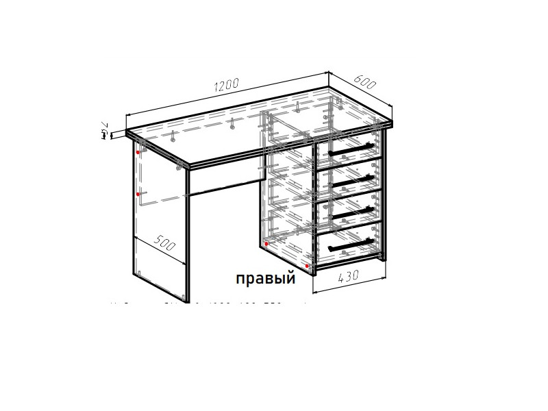 Стол однотумбовый (4 ящика) правый GM 7.2
